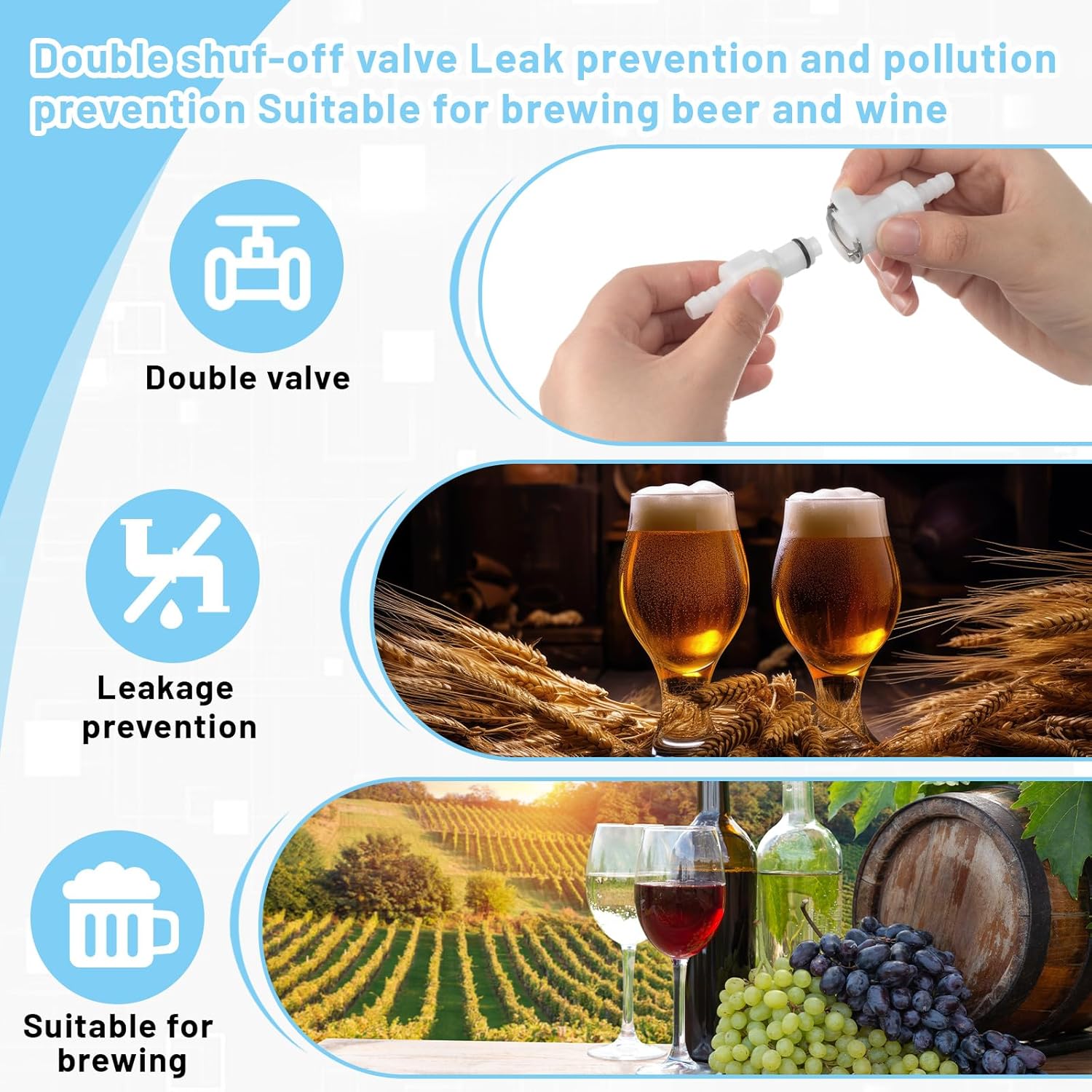 • Double stop valve design ensures automatic sealing to prevent leaks when disconnected