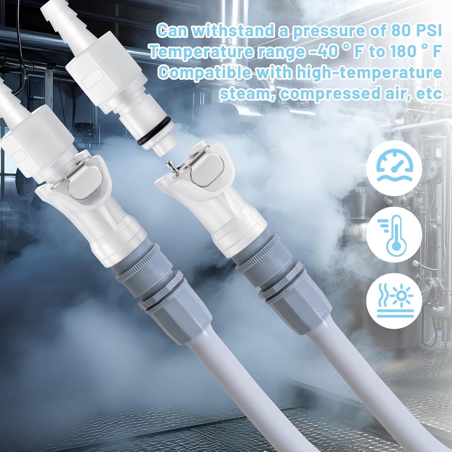 • Withstands up to 80 PSI pressure and temperatures from -40°F to 180°F for versatile use