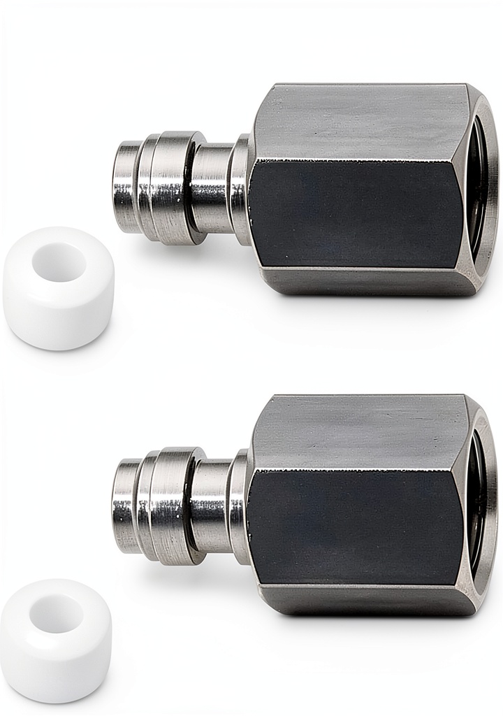 Each 2-pack includes the quick-disconnect plugs along with seal washers, so no additional parts are needed for basic installation and use.