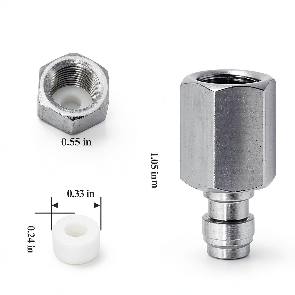 The Ebrmeiwo quick-disconnect plug features 1/8 BSPP female threads and stainless steel construction, ensuring reliable, high-pressure connections up to 5000 PSI. Ideal for airguns, paintball tanks, and pneumatic tools, it comes in a 2-pack with seal washers to prevent leaks and enhance durability. This plug simplifies linking fill adapters to air tool fittings, making it a practical choice for hobbyists and professionals alike.